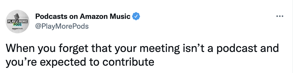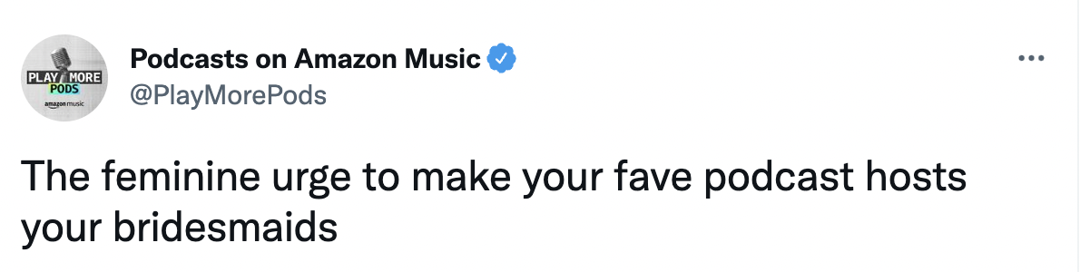 COPYWRITERAs the leader in e-commerce, how can Amazon translate their success to compete with major music & entertainment streaming platforms? The @playmorepods twitter account is your Gen-Z bestie. Amazon wanted to join the cultural discourse, not just comment on it. We successfully created a voice that not only informs, but feels like your funniest friend.