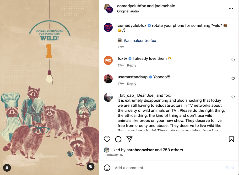 Since this was FOX’s fully owned comedy, Animal Control was an enormous priority. With a well-executed marketing campaign, some brand ambassadors, a unique influencer campaign, a big push during the Super Bowl, and a red carpet premiere event, fans got a glimpse of the fun shenanigans and mayhem of FOX’s newest comedy Animal Control. You can find some of our most hisssterical content below — see if you can spot the Community reference!